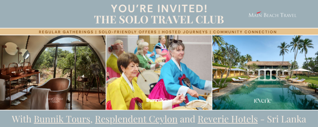 Main Beach Travel Solo Travel Club with Bunnik & Resplendent Ceylon 30 Apr 26